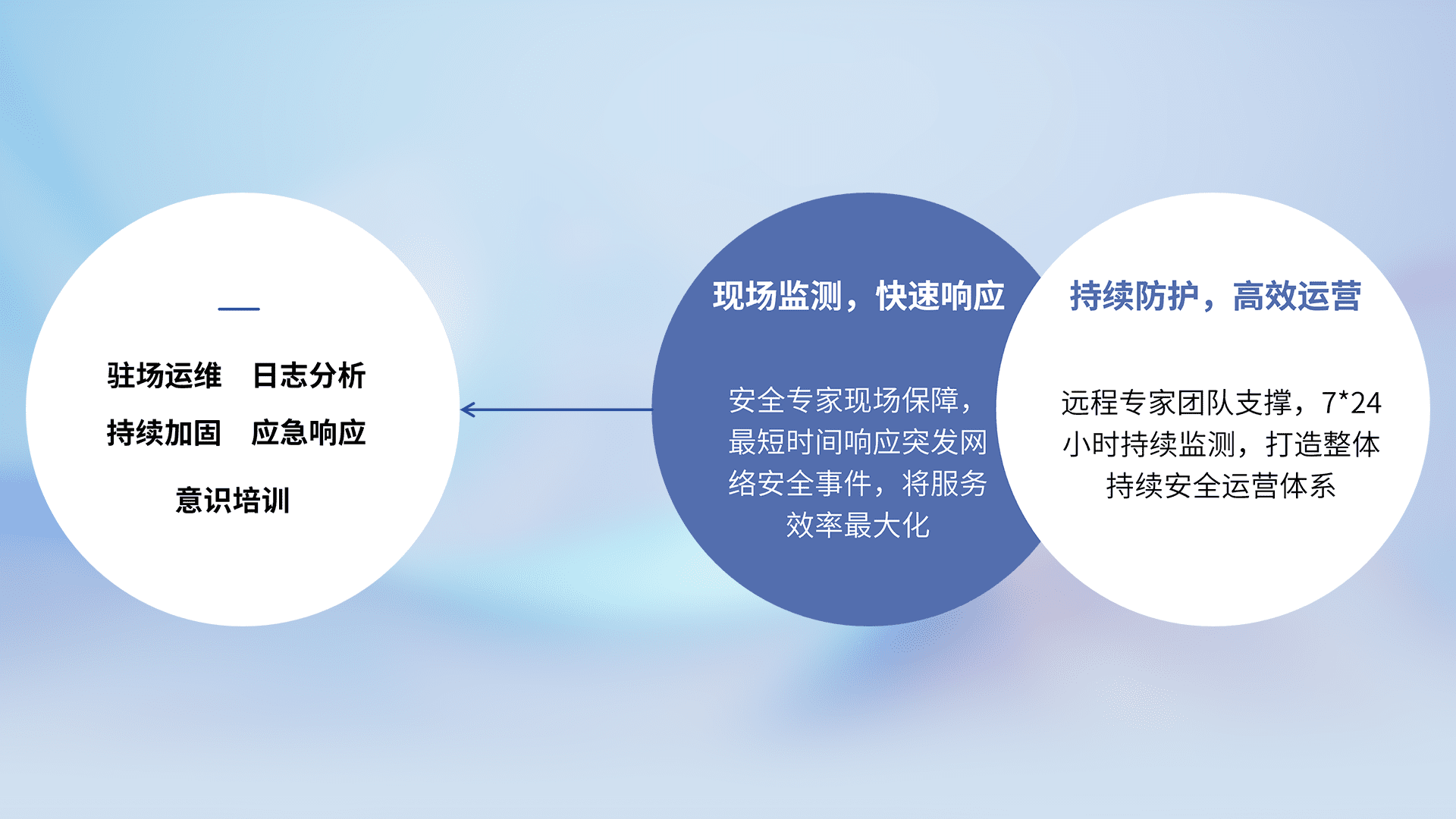 7X24小时持续监测安全事件,保持安全策略有效性,降低资产脆弱性风险,,精准拦截黑客攻击,,减少被黑客利用的机会,,,第一时间遏制,,,,降低损失。。。